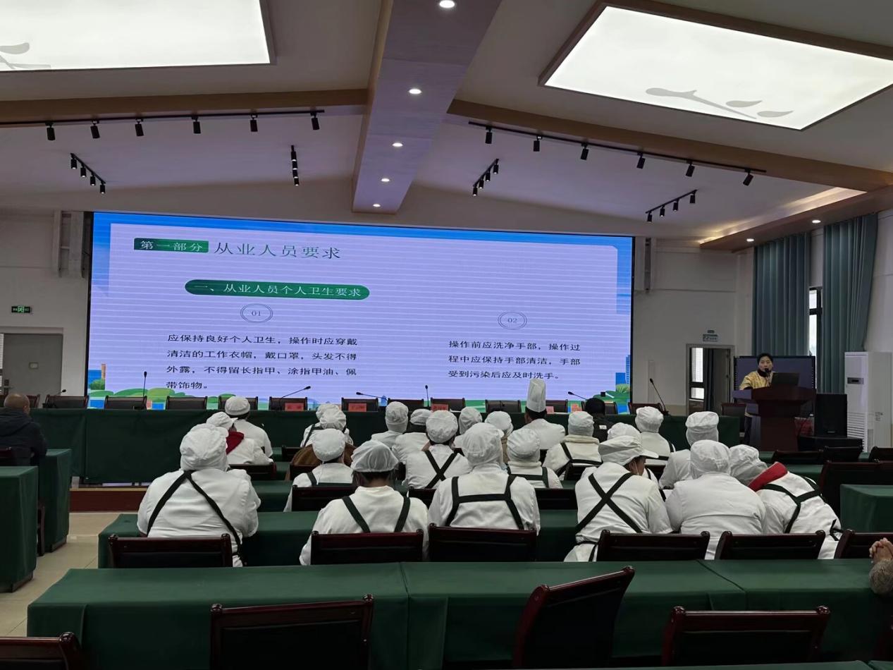 培训强调,校园食堂无小事,必须严格落实校长负责制与日管控、周排查、月调度工作机制,做到责任到人、全程管控、闭环管理。全体从业人员必须持有效健康证上岗,规范穿戴工作衣帽、口罩,保持个人卫生;严把食材入口关,严禁过期、变质、“三无”食材进入食堂;严格执行食品留样制度,确保足量、按时、规范留存;强化餐具消毒与环境卫生,严防交叉污染,全力消除安全隐患。