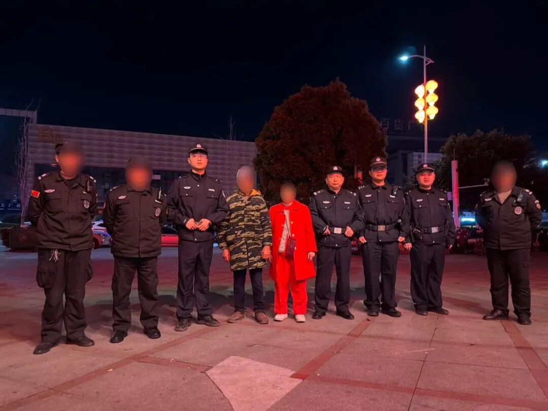 搜寻过程中,民辅警沿着老人途经的煜坤加气站、克拉中心、车配龙汽车百货国际广场、华祥城、纵横批发市场、健坤城等区域,一路徒步巡查、沿街询问、反复排查。复杂路段、密集街巷、夜色渐浓,搜寻难度不断加大,但民辅警丝毫没有懈怠,顾不上休息、顾不上疲惫,不放过任何一处角落、不遗漏任何一条线索。从16时到深夜23时,民辅警在反复排查与追踪后,终于在某小区公寓大厅内,成功找到走失的龚大爷。经现场查看,老人身体状况较好,情绪也逐渐平复。