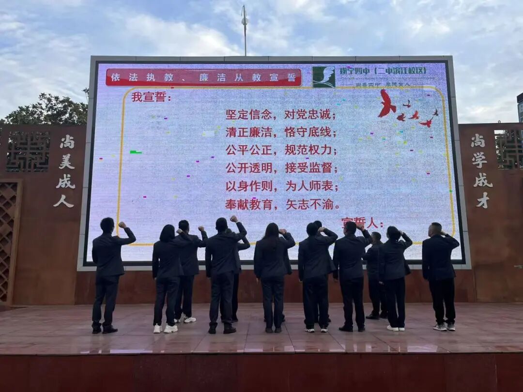 为筑牢师德师风底线,彰显育人担当,学校管理团队举行庄严的廉洁宣誓仪式。在党总支副书记、校长向春泽的带领下,全体管理团队成员郑重宣誓,承诺坚守教育初心、严守廉洁底线、恪尽职守、秉公执教,以清正之风护航学校发展,以赤诚之心培育时代新人。