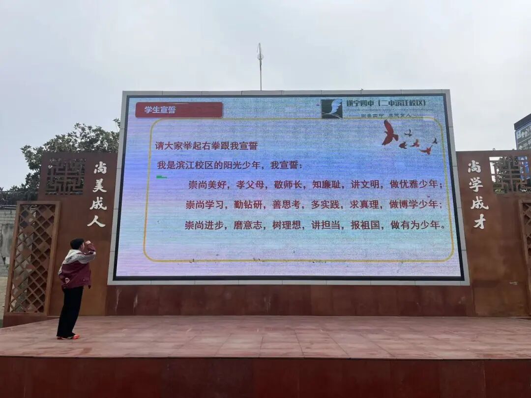 仪式的最后,全体学生迎来了庄严的宣誓环节。铮铮誓言里,藏着滨江少年崇德向善、勤学善思的追求,更彰显着他们以理想为帆、以奋斗为桨,在马年新征程中争做有为少年的坚定决心。