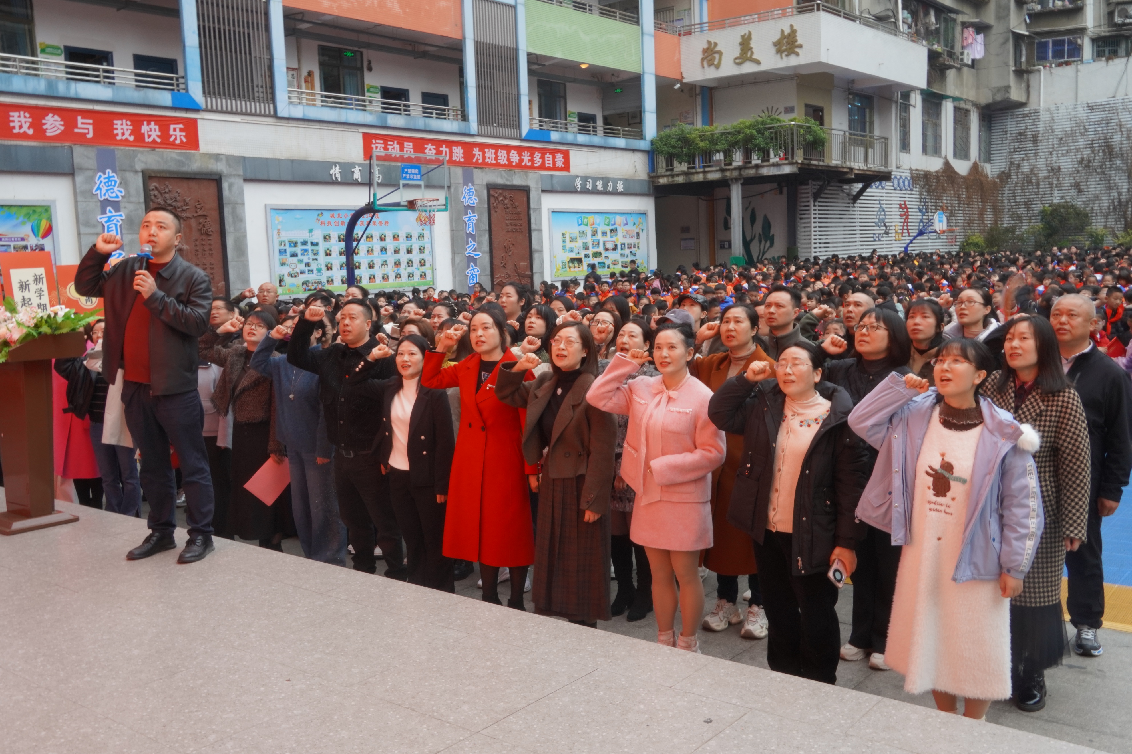 春风浩荡满目新,扬帆奋进正当时。2026年3月4日上午,遂宁市船山区城北小学全体师生齐聚操场,隆重举行以“龙马启新程 逐梦向未来”为主题的2026年春季开学典礼。全校师生在奉小辉校长的带领下,以昂扬向上的精神姿态开启新学期征程,用庄严的仪式、铿锵的誓言与奋进的承诺,书写新时代基础教育高质量发展的城北答卷。
