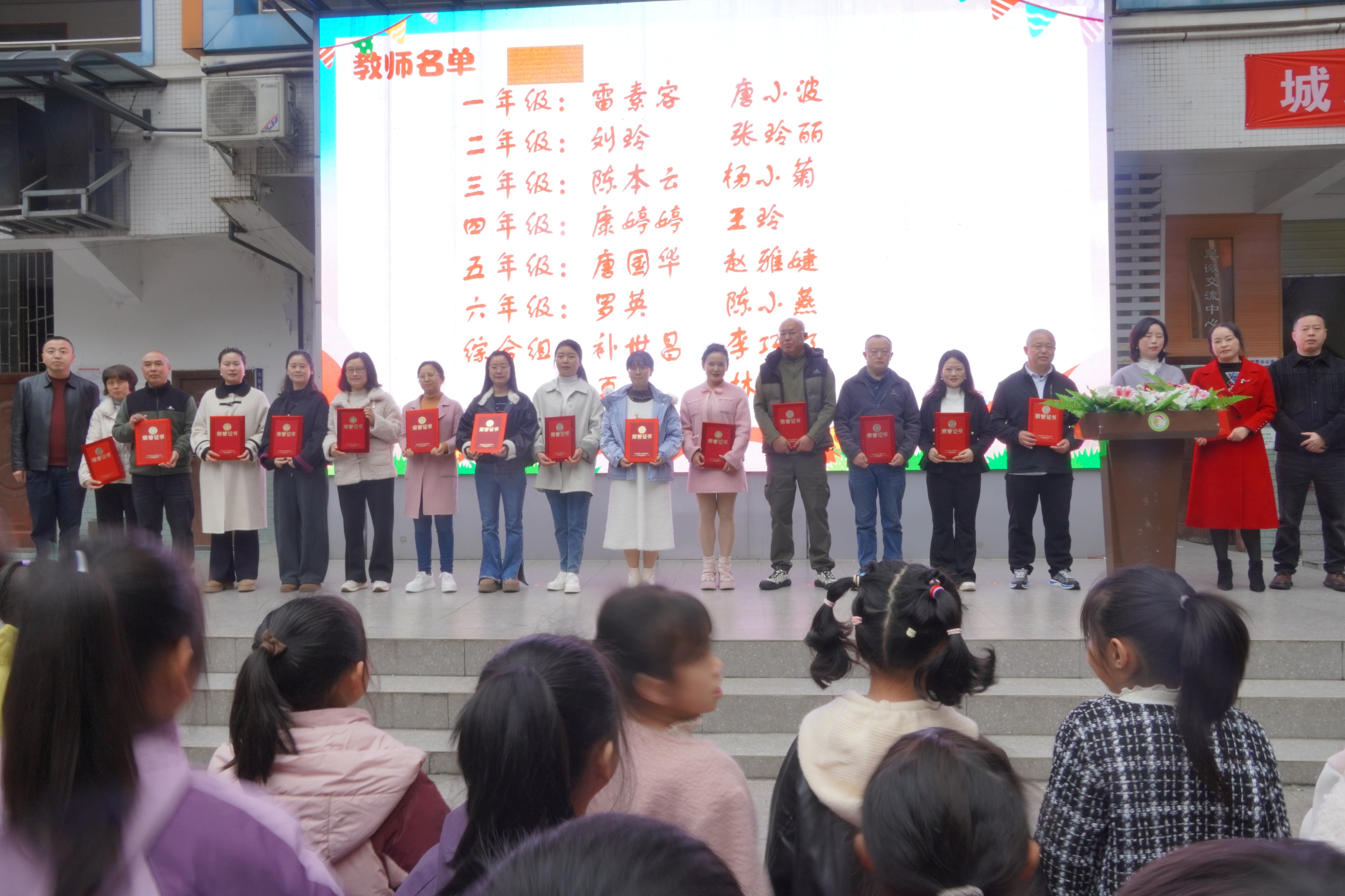 典礼现场,学校对过去一学期里表现突出的优秀教师、优秀学生及优秀学生干部进行隆重表彰。唐小波、刘玲等教师荣获“优秀教师”称号,一批品学兼优、表现优异的学生被授予“优秀学生”荣誉。