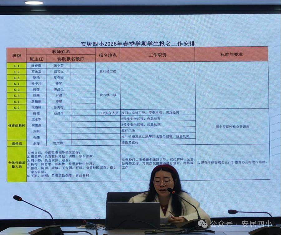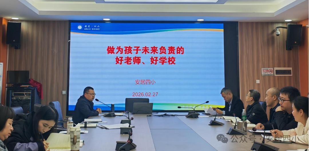 2月27日,遂宁市安居区第四小学校在综合会议室召开2026年春季开学培训及工作部署会,全体教师参会。