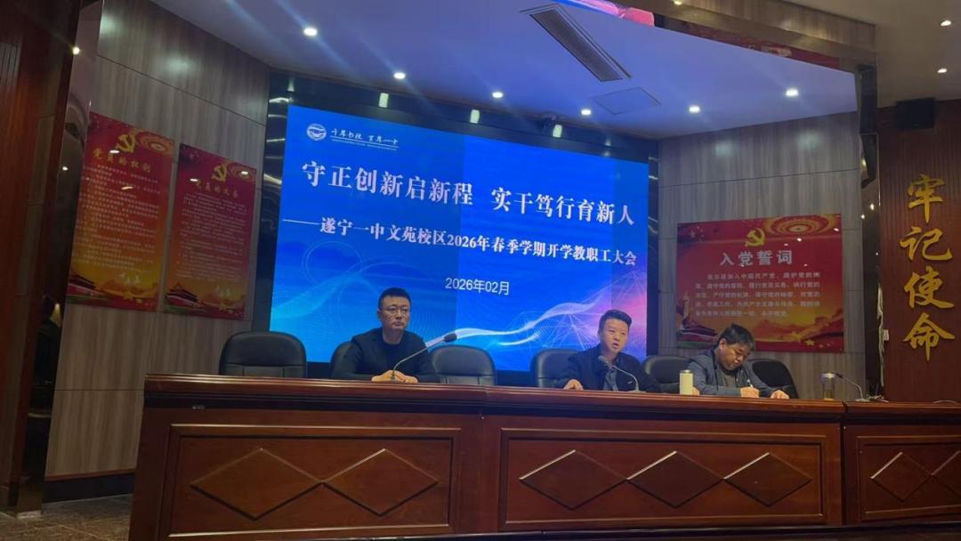 春潮涌动启新程,奋楫扬帆正当时。为确保2026年春季学期开学工作平稳、有序开展,找准方向定位,明确发展目标,2月25下午,遂宁一中召开2026年春季学期开学干部大会。