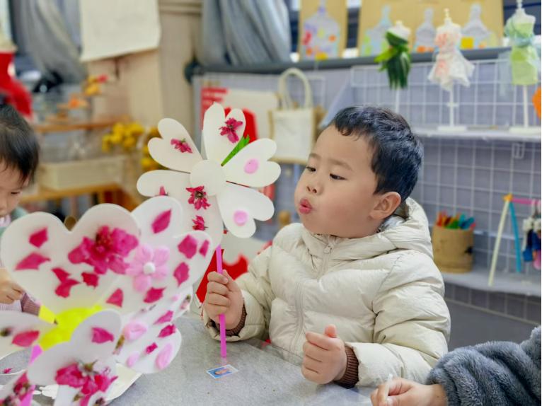 三江新区博学街幼儿园小班的雅童们用巧手与花朵对话,粉桃花瓣轻盈柔美,细心装饰风车,轻轻一吹,风车转动,雅童脸上绽放着比花更美的笑容;金黄的迎春花被串成风铃,叮咚声响里藏着他们勇敢迎接新挑战的心声;在洋桔梗的清香中,雅童们专注地敲打花瓣,将汁液染成独一无二的小方巾,“送给妈妈,让她也闻一闻春天的味道”——童言稚语间,真诚的爱意悄然流露。每一片花瓣都是春天的礼物,每一位雅童都在用自己的方式,让美好的品质在心间生根发芽。