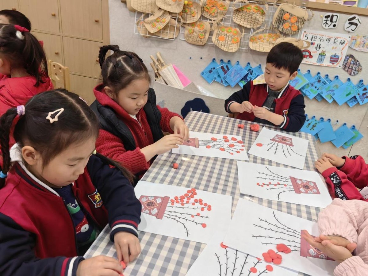 三江新区红星幼儿园中班组的小朋友用灵巧的小手迎接元宵:他们制作了《元宵花》手工作品,用彩纸和黏土创作出《红红的灯笼》,还学习了手势舞《快乐元宵节》。在歌声与舞动中,表达对节日的喜爱与祝福。