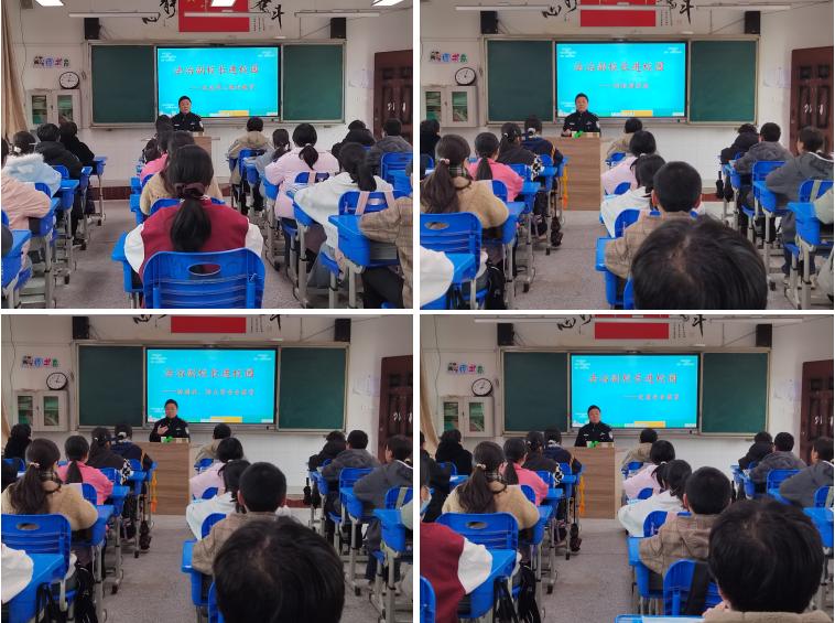 宣讲中,南溪区大观镇大坪学校法治副校长李星宏紧扣青少年成长特点与校园安全实际,围绕网络安全、未成年人保护法、预防未成年人犯罪、交通安全、校园欺凌等主题,以案普法,用通俗易懂的语言讲解法律知识与安全常识。在网络安全方面,重点讲解个人信息保护、防范网络诈骗、远离不良网络信息、理性上网等内容,提醒学生警惕游戏充值陷阱、陌生链接与网络欺凌;围绕《未成年人保护法》,解读家庭、学校、社会、网络、政府、司法“六大保护”,明确未成年人权利与维权途径;结合《预防未成年人犯罪法》警示学生远离违法犯罪,守住行为底线;交通安全环节,强调步行、骑行、乘车规范,普及“一盔一带”、未满16周岁不骑行电动自行车等安全要求;针对校园欺凌,系统讲解欺凌表现、危害后果与法律责任,引导学生不做施暴者、不做旁观者、勇于保护自己,遇到欺凌及时向老师、家长求助。