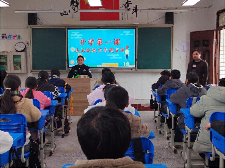 为深入推进校园法治建设,增强学生法治意识与自我保护能力,营造安全、文明、和谐的校园环境。2026年3月5日,宜宾市南溪区大观镇大坪学校邀请法治副校长、大观派出所副所长李星宏进校园,为学生们带来了一堂内容丰富、贴近生活的“开学法治第一课”。
