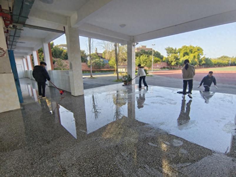 在清洁过程中,叙州区高场职业技术学校同学们发扬不怕脏、不怕累的优良作风,细致清理楼道角落、整理公共区域物品;该校老师们率先垂范,带头参与环境清扫,指导学生规范开展卫生消杀,引导大家养成良好卫生习惯。校园内外处处是忙碌的身影,彰显出高场职校学子勤劳向上、团结协作的精神风貌。