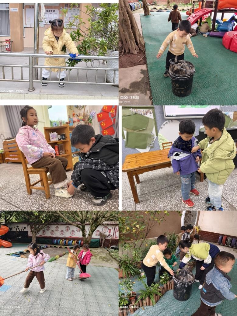 紧接着,全园幼儿走出教室,用实际行动践行雷锋精神。南溪区南溪街道中心幼儿园小班幼儿在老师引导下,他们认真学习整理玩具、摆放小椅子;中班幼儿们化身“环保小卫士”,手拿小抹布、垃圾袋,认真捡拾园内的纸屑、落叶,仔细擦拭长廊、长椅和大型玩具;大班幼儿耐心地帮助弟弟妹妹整理衣物、穿鞋子、系鞋带,在劳动中体会付出的快乐。