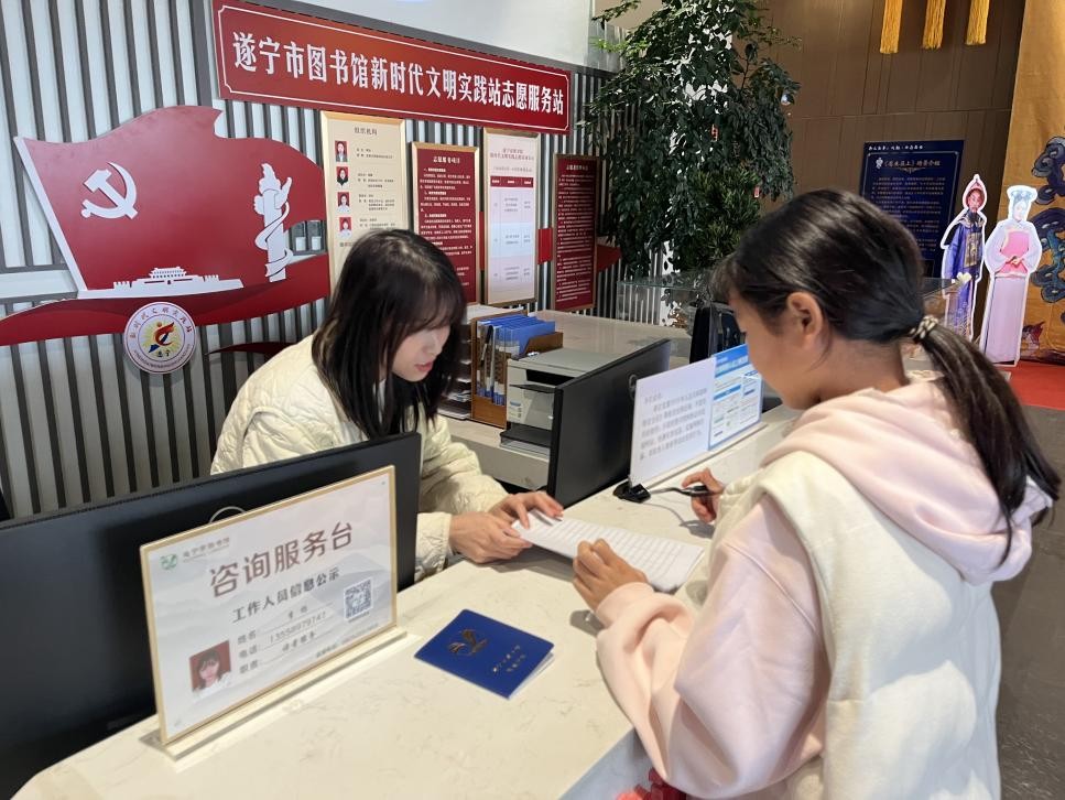 川韵书香·戏润心田——戏曲与阅读的双重奏章。携手遂宁市川剧团开展川剧主题阅读活动,用静态展览与动态体验相结合的方式,将川剧艺术巧妙融合进全民阅读。陈列在遂宁市图书馆一楼的“川韵书香·蜀戏风华——遂宁市川剧文化艺术展”,通过“戏源·典籍寻根”“戏彩·粉墨乾坤”“戏韵·活态舞台”“戏趣·文创雅集”四大篇章向读者全景呈现川剧文献、脸谱服饰、获奖剧目手稿及文创产品,并特别还原廉政川剧《苍生在上》经典场景,吸引读者沉浸式打卡拍照,1月1日至2月28日累计观展达3.5万人次。