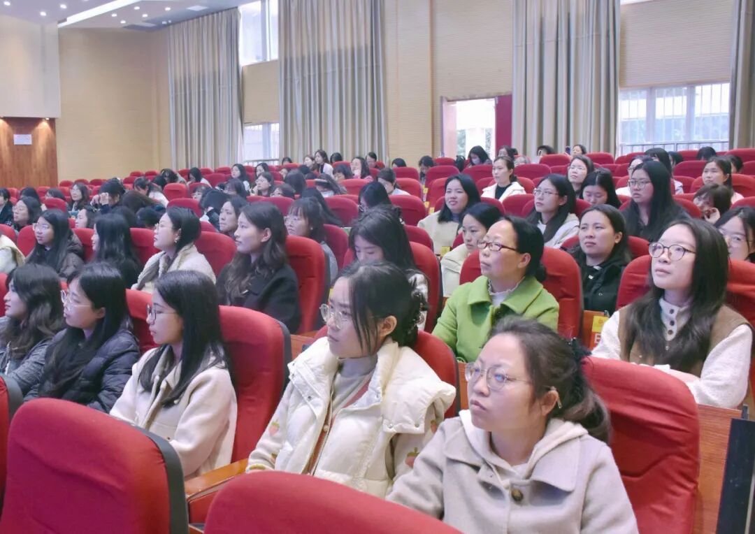 本次活动以表彰致敬巾帼,以关怀传递温暖。学校特邀遂宁市第一人民医院副主任医师廖丽,为全体女教职工带来涵盖宫颈癌筛查、更年期健康管理等内容的专题健康讲座,把专业的健康指导与暖心关怀送到每位教职工身边,尽显学校对教职工身心健康的细致守护与全面关怀。