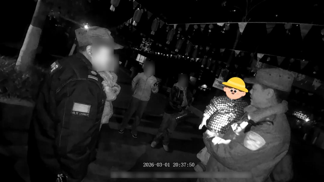 3月1日晚,遂宁市公安局经开区公安分局嘉禾派出所民辅警在处置完警情返回单位途中,发现一名两岁左右的年幼孩童独自站在马路中央,周边无成人看护,夜间车流量较大,情况十分危险。见此情形,民警立即停车,快速将孩子带至路边安全区域。