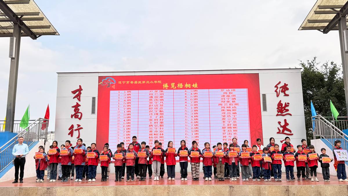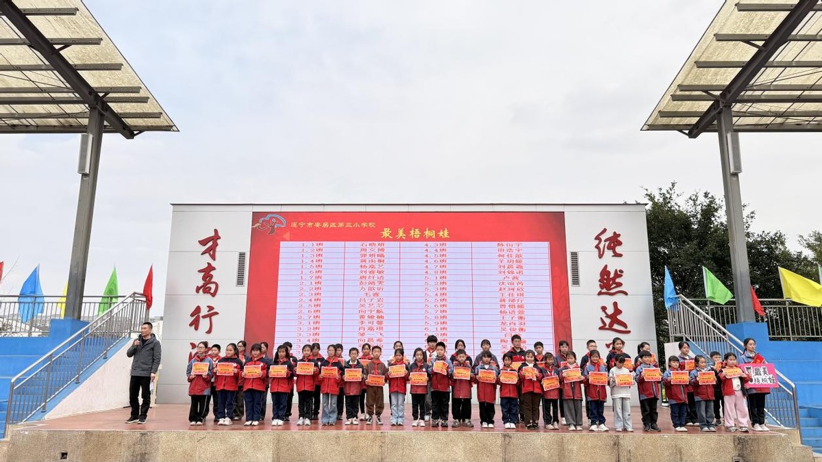 典礼上,学校依次颁发“善学梧桐娃”“最美梧桐娃”“超越梧桐娃”“博览梧桐娃”“勤劳梧桐娃”等奖项,表彰在各方面表现突出的学生。孩子们手捧奖状,笑容灿烂,榜样力量在校园悄然传递。