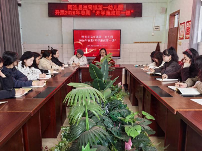 2026年3月3日,筠连县巡司镇第一幼儿园组织全体教职工开展了“开学廉政第一课”集中学习活动,以“坚守廉洁初心,整治群腐问题,筑牢育人防线”为主题,强化师德师风与廉洁从教意识,此次课程由幼儿园党支部书记、园长谢兰主讲,全体教师参与。
