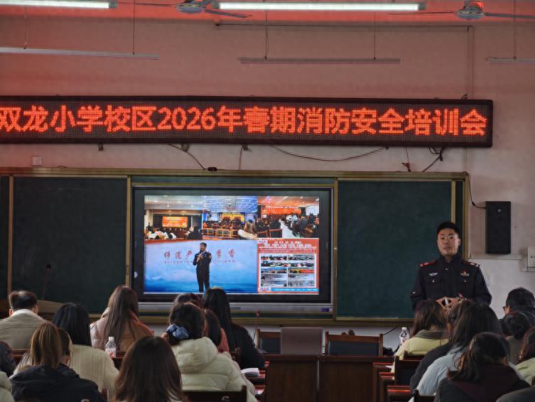 3月9日,渝安消防教官为叙州区双龙学校双龙小学校区全体教师开展消防安全知识普及。教官结合家庭、校园实际,讲解火灾预防、火场逃生、初期处置、灭火器种类、灭火器使用方法等要点,进一步提升教师安全防范与应急指导能力。