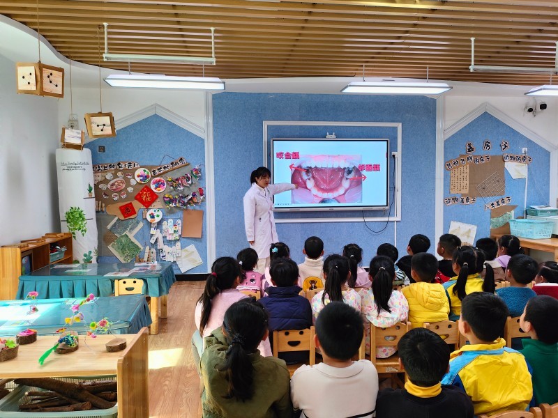 活动开始,南溪区北城幼儿园安保主任徐婷婷介绍了此次活动的目的、流程及注意事项,引导大家高度重视、积极参与。活动重点开展意外伤害防护培训,南溪区妇幼保健院医生韩梁结合校园常见意外伤害场景,为全体教师详细讲解跌倒、磕碰、异物卡喉等意外的应急处置方法,结合临床实例演示正确急救操作,切实提升教师的应急反应和处置能力。同时,同步开展健康教育相关内容,南溪区妇幼保健院副院长王艳平为教师普及《生命至上,终结艾滋》《两癌筛查知识科普》等健康知识;随后,医生邓召吉进入班级,开展《龋齿的防护》主题宣教,通过趣味讲解、牙齿模型展示,教孩子们掌握龋齿预防方法和正确刷牙技巧,帮助孩子们树立良好的口腔健康意识。