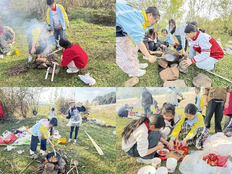 抵达后,师生有序参观历史陈列馆,通过文物与讲解,深入学习革命英雄伍先华的光辉事迹,接受红色精神洗礼,有效激发了爱国热情与民族自豪感。六年级师生则前往指定场地开展户外野炊活动,在老师的安全指导下,各班分工协作、默契配合,完成生火、洗菜、烹饪等环节,学生亲手制作美食,在劳动中体会生活乐趣,提升生活技能,增强集体荣誉感。下午,全体师生主动清理活动场地垃圾,践行“无痕研学”理念,守护环境整洁。随后师生有序返程,安全返回校园。