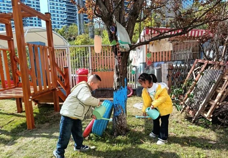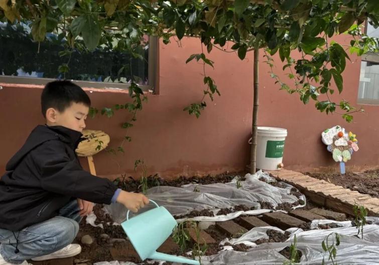 三江新区菜园沱幼儿园孩子们从种植中体验劳动的快乐,照顾植物时认真、专注的样子太可爱啦!
