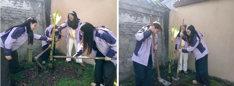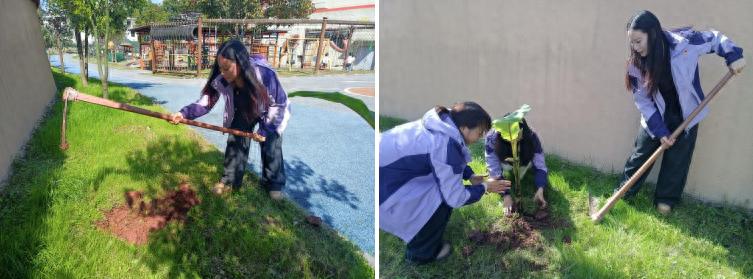 活动现场,高县复兴镇幼儿园党员同志们佩戴党徽,亮明身份,冲锋在前,充分发挥了“党员先锋岗”的模范带头作用。各小组成员分工协作,默契配合,有的挥锹铲土,有的扶苗填坑,有的施撒底肥,有的提水浇灌,每一个环节都一丝不苟。经过大家的共同努力,一棵棵承载着希望与责任的香蕉树苗在幼儿园的土地上“安家落户”,为初春的校园增添了一抹新绿和勃勃生机。