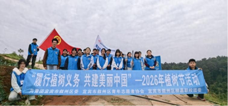 3月12日,由共青团宜宾市叙州区委指导,宜宾市叙州区柳嘉职业技术学校团委组织开展的“‘履行植树义务·共建美丽中国’2026年植树节活动”在叙州区合什镇高嘴村顺利举行。学校教师代表及学生志愿者共计30余人参与了本次活动。