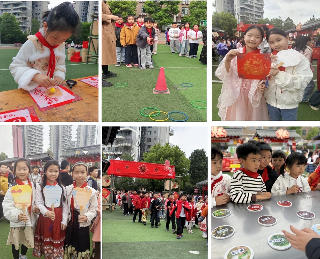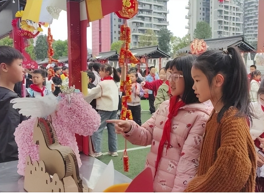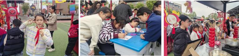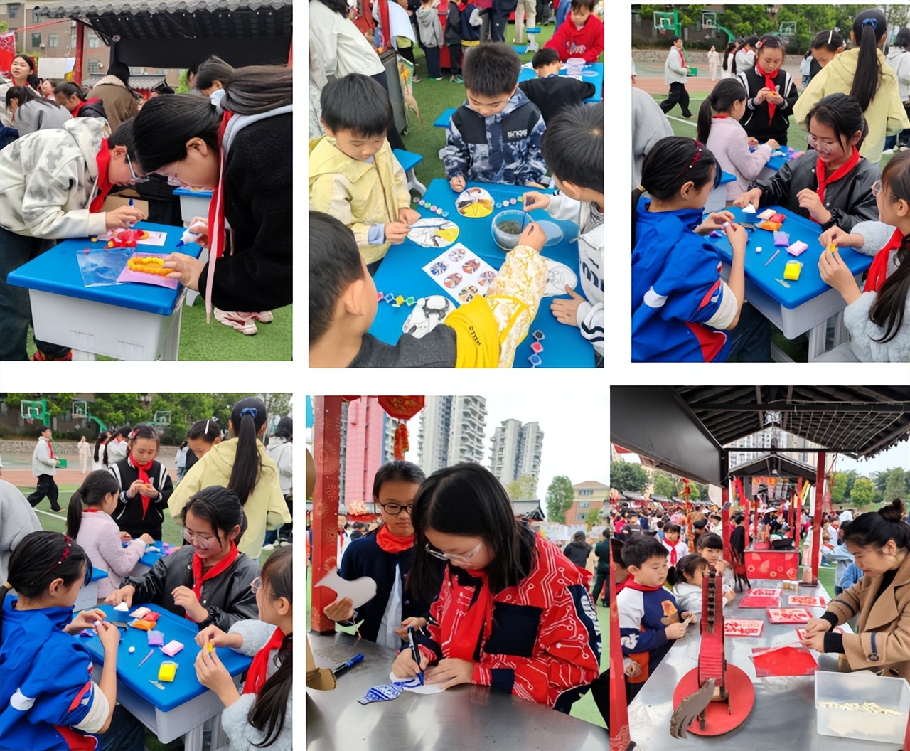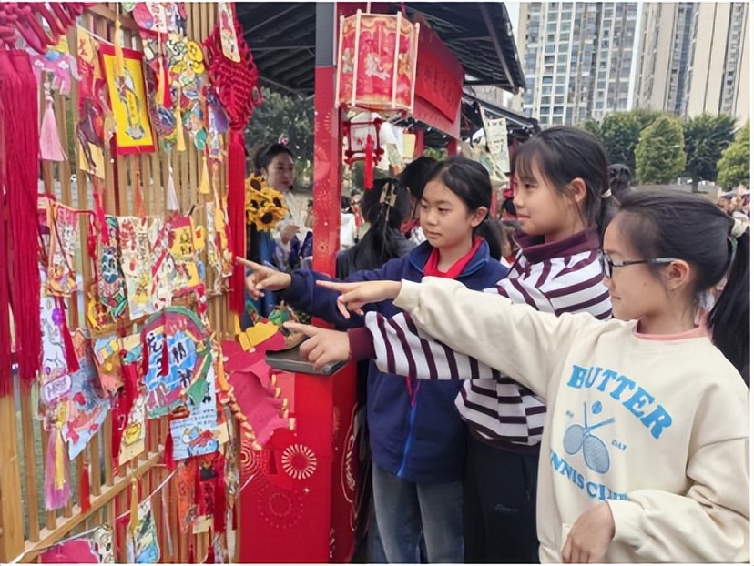 活动现场,福马拓印、指尖剪纸、扭棒创作、糖画非遗、脸谱描春等项目依次铺开,孩子们凝神创作、巧手灵动,将春日意趣与民俗之美藏于指尖。投壶、套圈、滚环、踢毽等传统游戏摊位前欢声笑语不断。孩子们在互动中舒展天性、收获快乐。猜谜问答、乡音体验、民俗宴席等环节寓教于乐,少年们在思考与协作中,触摸乡土底蕴,感悟文化传承。