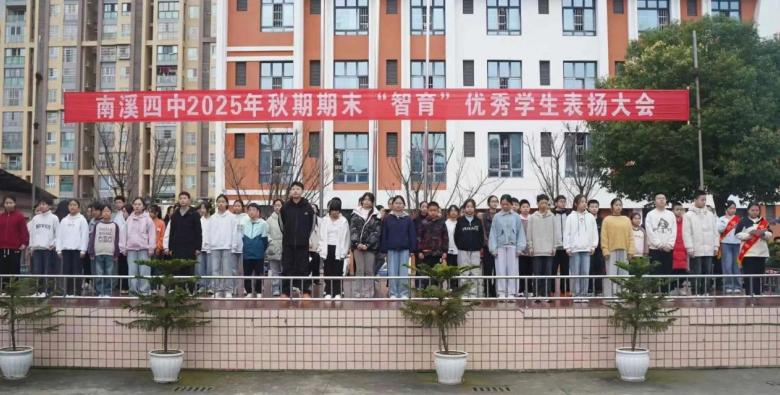 为表扬先进、树立典型,激发学生学习热情,2026年3月11日,宜宾市南溪区第四中学校举行了2025年秋期期末智育优秀学生表扬大会,学校全体师生参加本次大会。