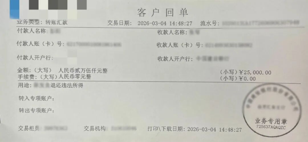 接警后,赤城派出所民警迅速响应,面对电信网络诈骗线索分散、资金链隐蔽、跨区域追踪难度大等重重困难,办案民警以分秒必争的态度和永不放弃的执着,全力开展资金追查工作。历经4个月地不懈努力,办案民警分批次为张女士追回经济损失共计13万余元。