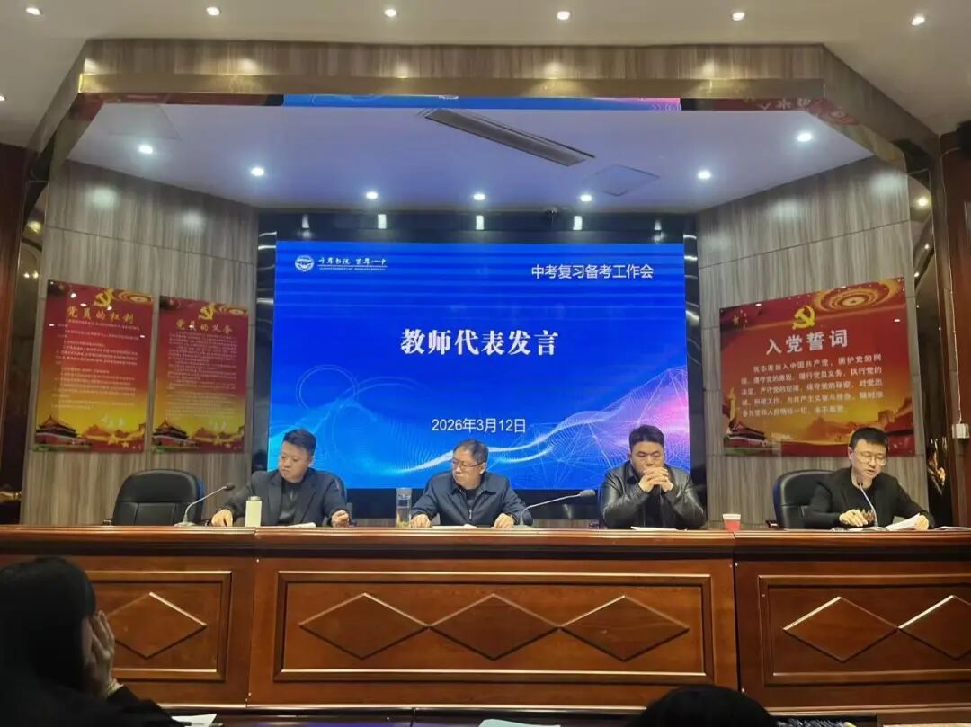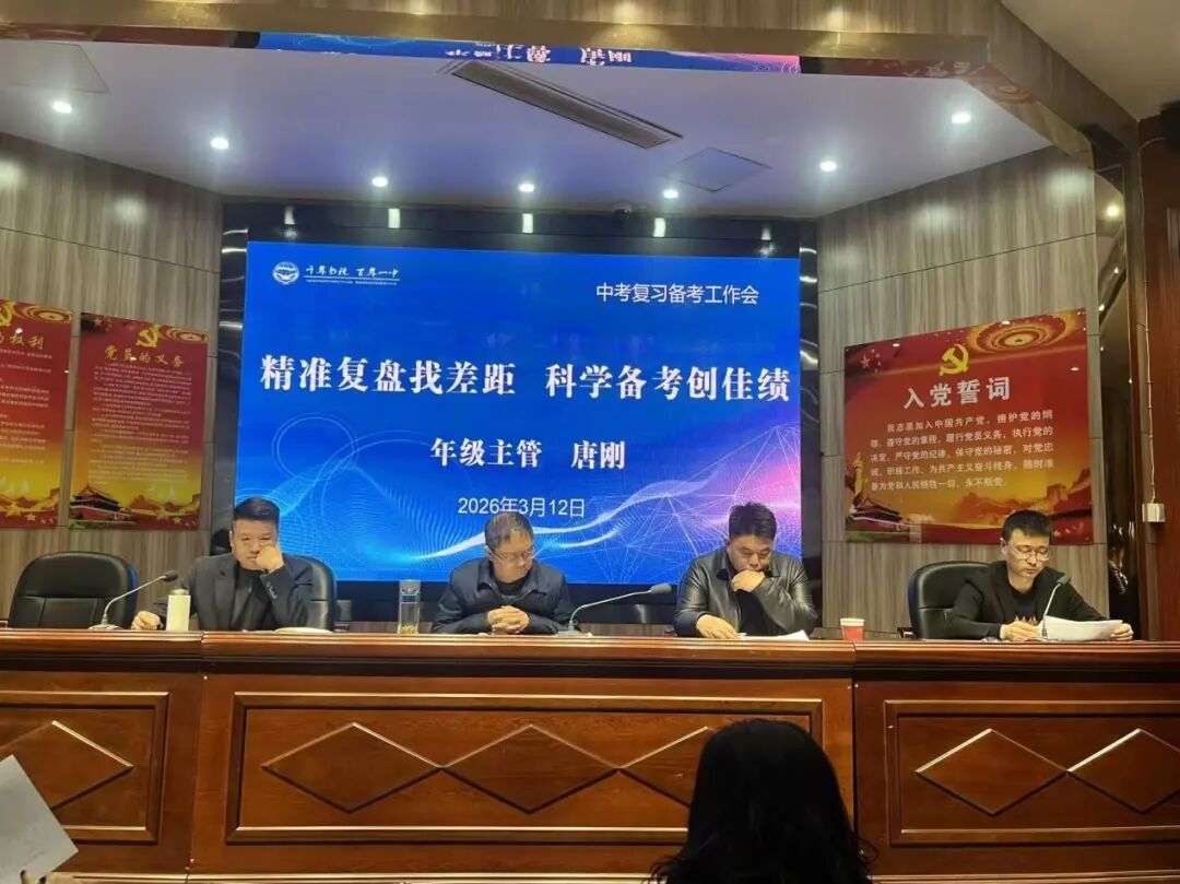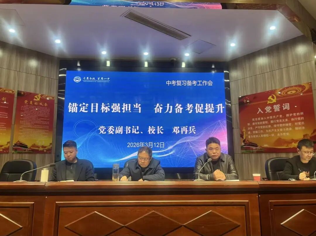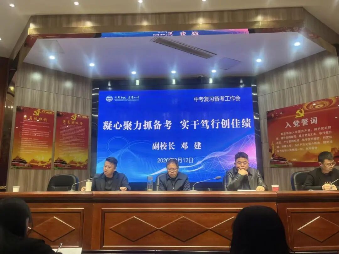为锚定中考冲刺目标,压实备考责任,凝聚全员奋进合力,3月12日下午4时,遂宁一中初2026届中考复习备考工作会在文苑校区多功能厅顺利召开。全体初三任课教师、初三毕业班领导小组成员齐聚一堂,复盘学情、明晰方向、部署举措,全力吹响中考冲刺集结号。
