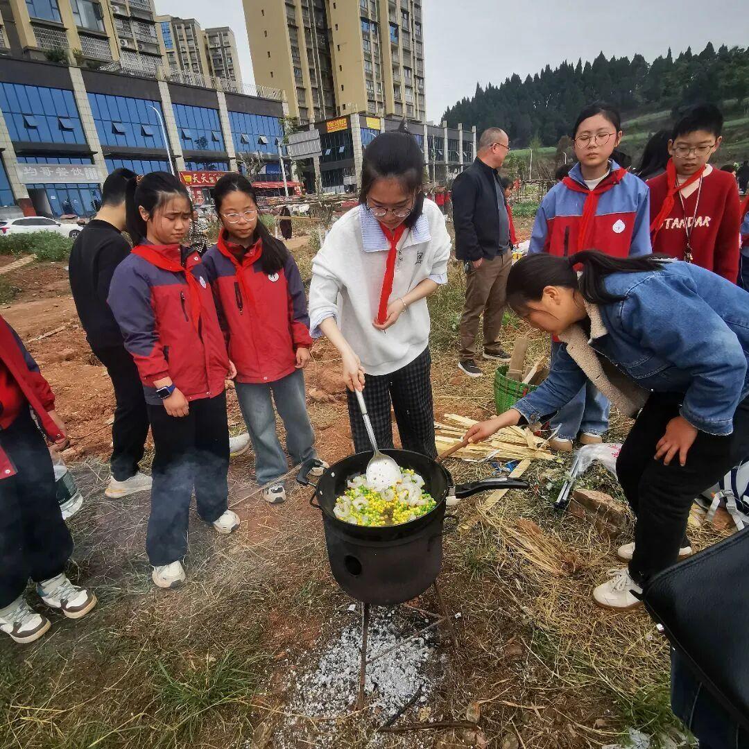 不一会儿,一道道“拿手好菜”陆续出锅:番茄炒蛋、青椒肉丝、火锅冒菜、还有香喷喷的蛋炒饭。甚至有的小组还拿出了看家本领,搞起了“烧烤摊”。虽然动作不那么娴熟,虽然有的菜可能盐放多了,有的饭可能煮糊了,但当大家围坐在一起,品尝着自己的劳动成果时,每个人的脸上都洋溢着自豪和满足的笑容。这才是童年该有的烟火气!