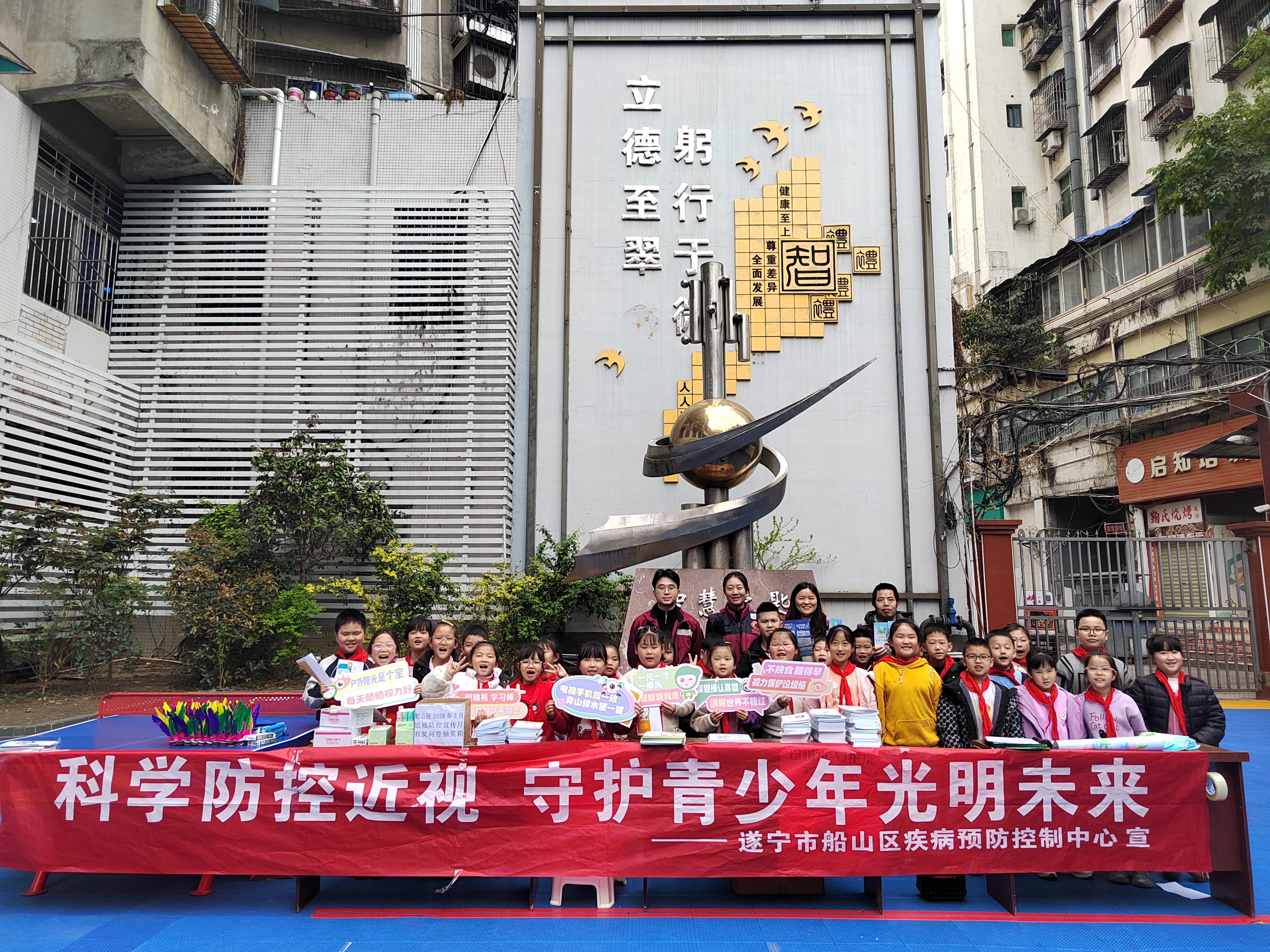 与此同时,遂宁市船山区疾病预防控制中心的工作人员也在校园内开展了形式多样的近视防控宣传。工作人员围绕正确读写姿势、控制电子产品使用、增加户外活动、均衡饮食护眼等重点内容进行科普讲解,并精心设置了护眼知识问答与抽奖互动环节。同学们积极举手、踊跃抢答,在轻松有趣的氛围中巩固护眼知识,答对的同学还获得了精美小礼品,现场欢声笑语不断,将护眼理念深深印在每一位同学心中。