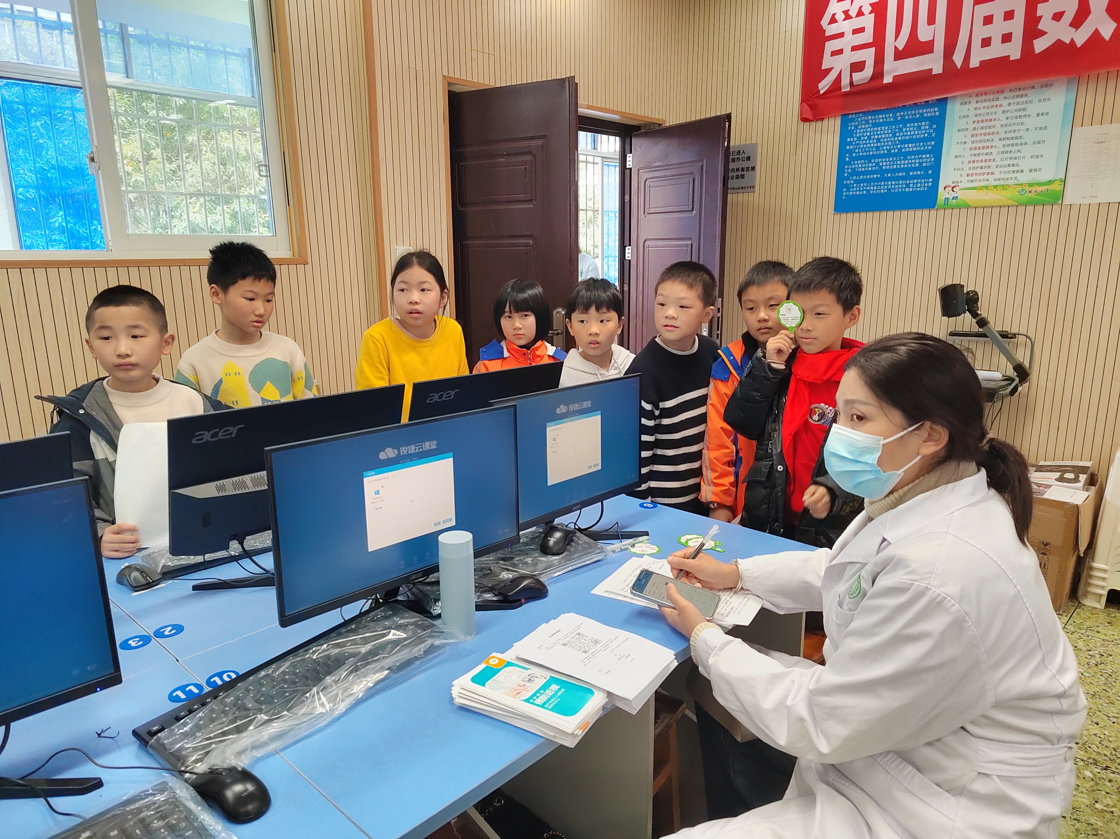 活动现场井然有序、氛围热烈。在视力筛查区域,遂宁市第三人民医院的眼科医护人员携带专业仪器,为全校学生进行细致、全面的视力检测。医护人员耐心引导同学们规范检查,认真记录每一位学生的视力数据,针对视力异常的同学现场给出科学用眼建议和复查指导。同时,医护人员还结合筛查情况,现场开展防近视宣传,用生动易懂的语言讲解近视成因、危害及日常护眼方法,引导同学们养成良好的用眼习惯。