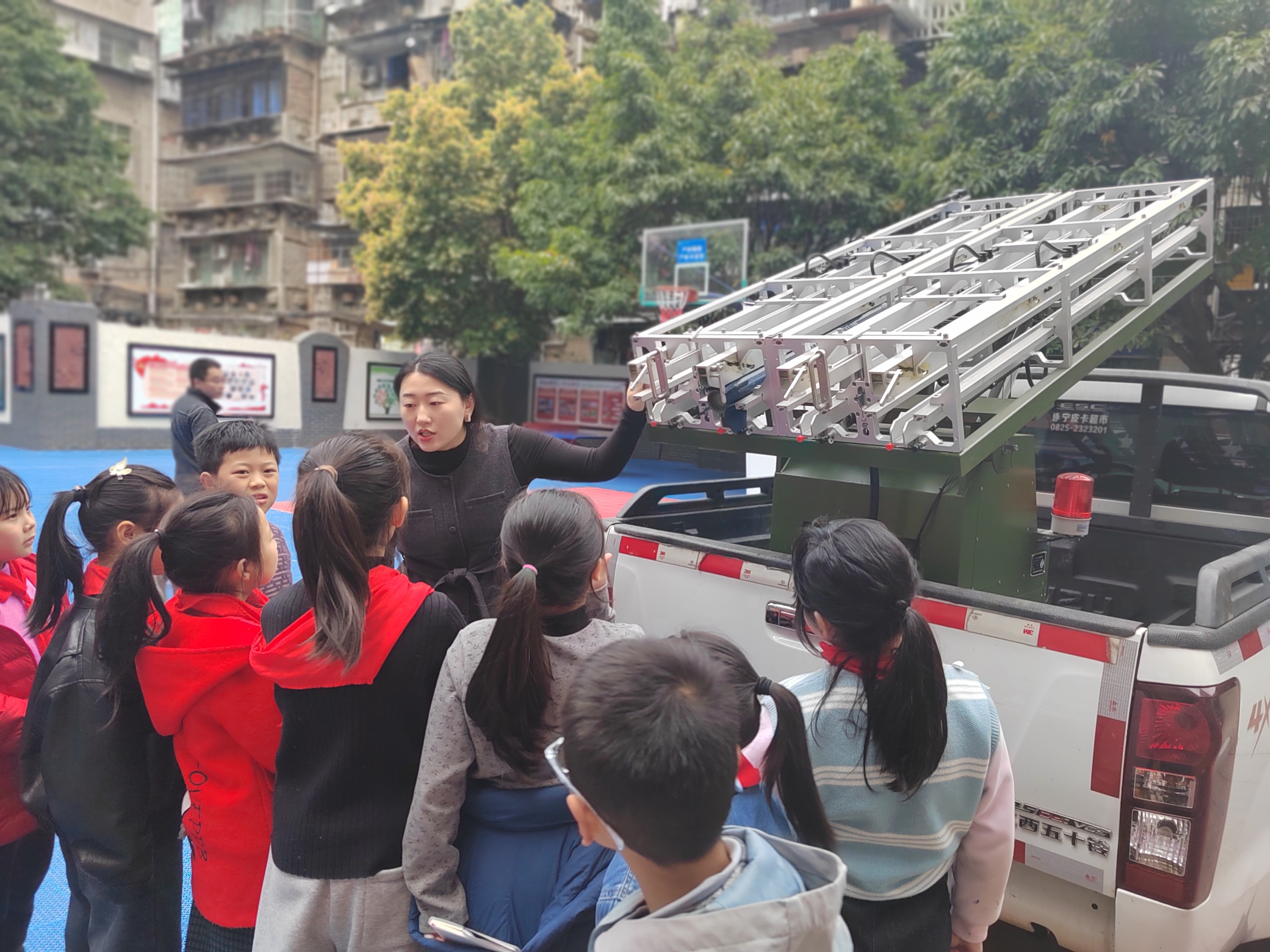 为让科普更具互动性和趣味性,现场还设置了气象仪器展示、趣味问答、科普手册发放等环节。工作人员带来了便携式自动气象站和人工增雨作业车等专业气象装备,手把手指导同学们近距离观察、亲手操作,让大家直观感受气象观测的奥秘。在互动问答环节,同学们踊跃举手、积极抢答,现场气氛热烈高涨,工作人员对同学们的提问耐心解答,进一步激发了广大青少年探索气象科学的热情。