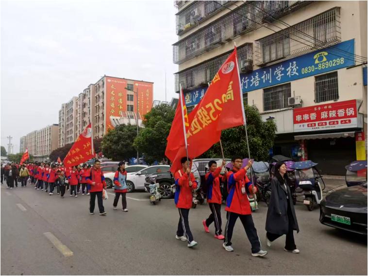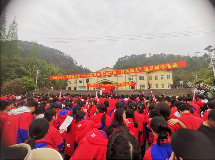 春山可望,步履铿锵。在“十五五”规划蓝图徐徐展开之际,泸县五中高2025级全体师生以一场淬炼身心的远足研学活动,将思政课堂搬进山川田野。2026年3月22日,千余名五中学子、老师、家长迎着晨光出发,用脚步丈量青春征程,在往返15公里的行走中感悟红色精神、磨砺坚韧意志、擘画时代担当,完成了一堂生动深刻的远足研学活动。
