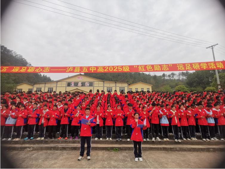 出征仪式在庄重而热烈的氛围中拉开了帷幕。泸县第五中学副校长刘勋蓝作了动员讲话,激励学子们在远足中磨砺意志、超越自我;该校副校长刘刚就安全事项作重点强调;年级主任古登华解读远足研学活动方案,该校学生代表张佳欣作安全承诺,字字铿锵;领誓人徐彬带领全体同学高举右拳,庄严宣誓:“奋进‘十五五’,远足砺心志!用脚步丈量信念,用汗水浇灌青春!”誓言响彻校园,激荡着每一颗年轻的心。