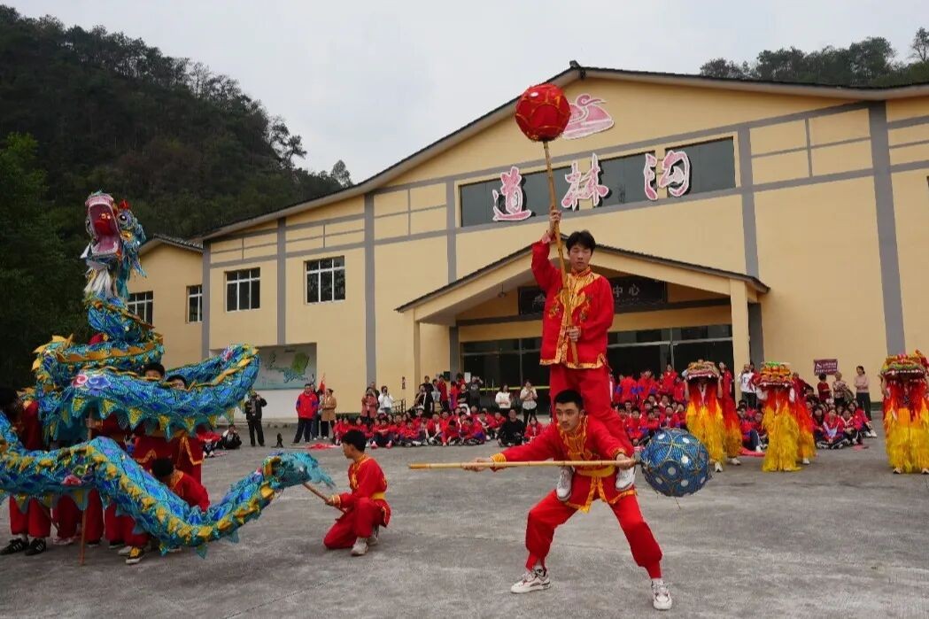 晨间的乡村空气清新,三月的微风裹挟着泥土与花香的芬芳。泸县第五中学学生们背着行囊,踩着轻快的步伐,以班级为单位、小组为方阵,两路纵队整齐有序地行进在泸荣路上。上午10:00,队伍顺利抵达道林沟游客中心。青山环抱间,一场别开生面的思政教育展演在这里精彩上演。