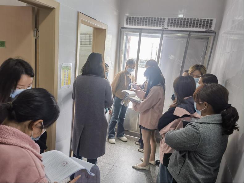 活动伊始,家长代表们在南溪区大观镇中心幼儿园后勤主任陈燕的带领下参观食堂。陈主任一边演示一边介绍,从食材入库的分类储存(生熟分开、荤素隔离),到烹饪前的浸泡清洗,再到留样柜里标注着日期、菜品的48小时留样,每个环节都细致讲解。她特别展示了厚厚的索证索票台账:“这是最近一个月的供货商资质、检验报告,我们要求所有食材‘来源可溯、质量可控’。”家长们还观摩了分餐间的消毒流程、送餐电梯的规范使用,实地感受“从农田到餐桌”的全链条监管。