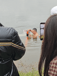 接到求助后,值班民辅警迅速赶到现场。到达现场后发现,电动三轮车深陷水中,湖水已经漫过了车顶,打捞难度较大。看着车辆一点点沉底湖中,大爷急得团团转。紧急时刻,民警岳君不顾天气寒冷,迅速脱去衣物鞋袜,毅然跳入河水之中,尝试用现场群众找来的绳索固定落水三轮车,再拉车上岸。然而,由于车辆较重、水流冲击,两次尝试均以绳索断裂告终。