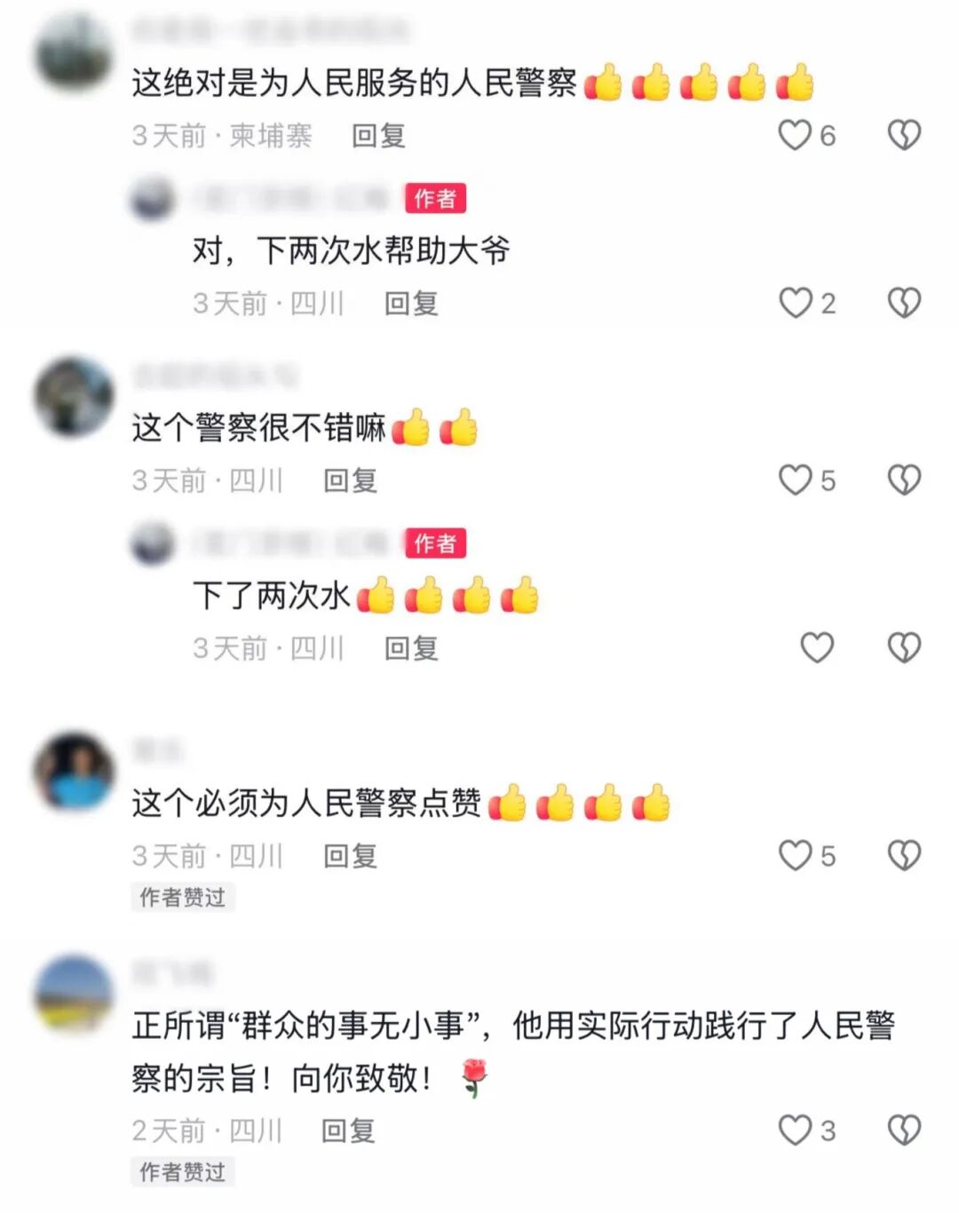 整个救援过程被现场群众用手机记录了下来。视频中,民警岳君不畏寒冷、浑身湿透却依然奋力救援的身影,以及警民之间默契配合的场景,深深打动了网友。视频上传至网络平台后,迅速引发广泛关注和转发,网友们纷纷留言:“为负责任的民警点赞!”“真正的人民好警察!” 一致好评如潮。