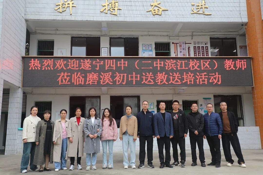 为促进城乡教育均衡发展,充分发挥优质教育资源的示范引领作用,加强校际间的交流与合作,3月25日,遂宁四中(二中滨江校区)党总支委员、副校长李攀华带领学校骨干教师团队一行,前往遂宁市安居区磨溪镇磨溪中学,开展“送教下乡”活动。