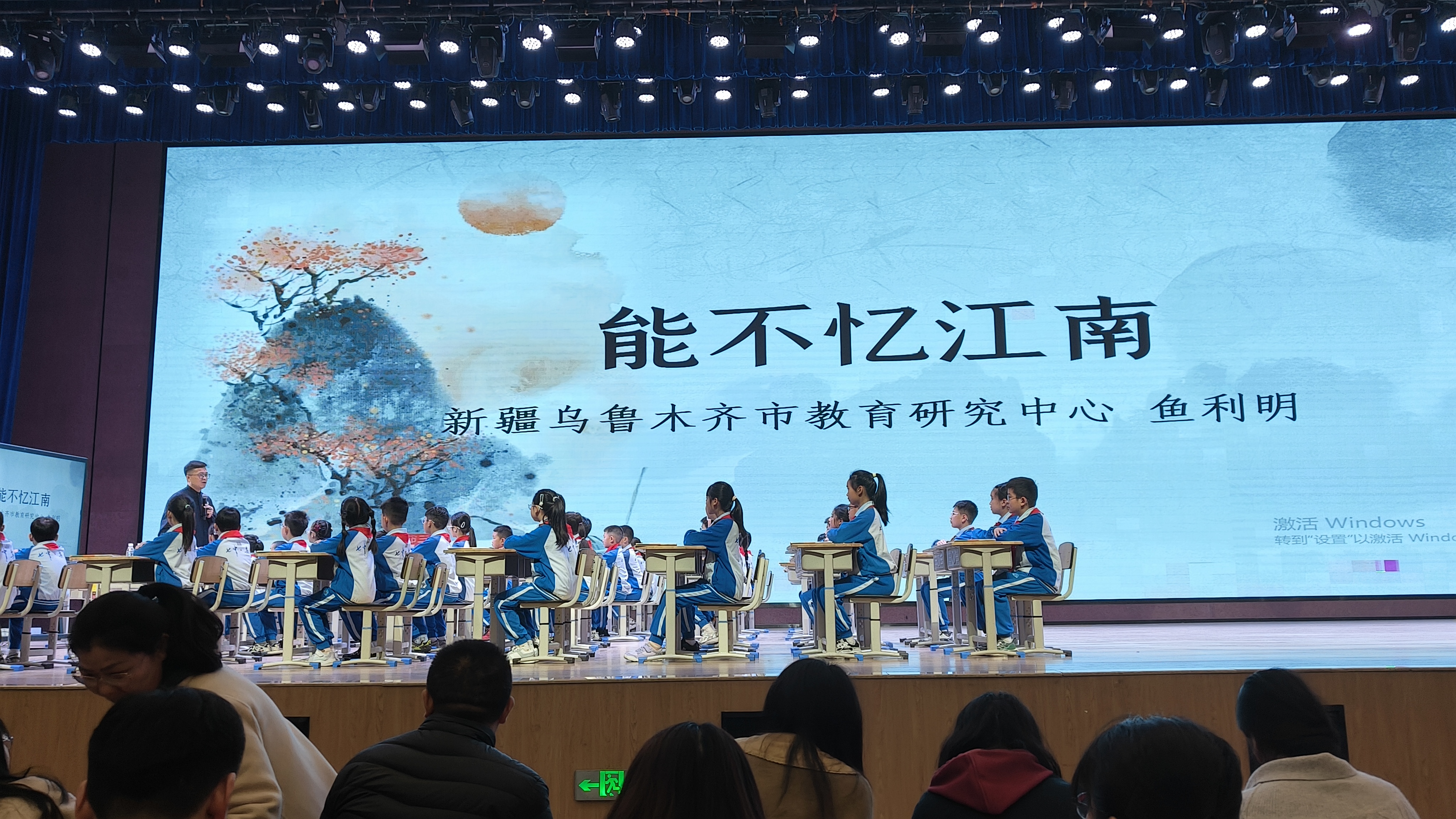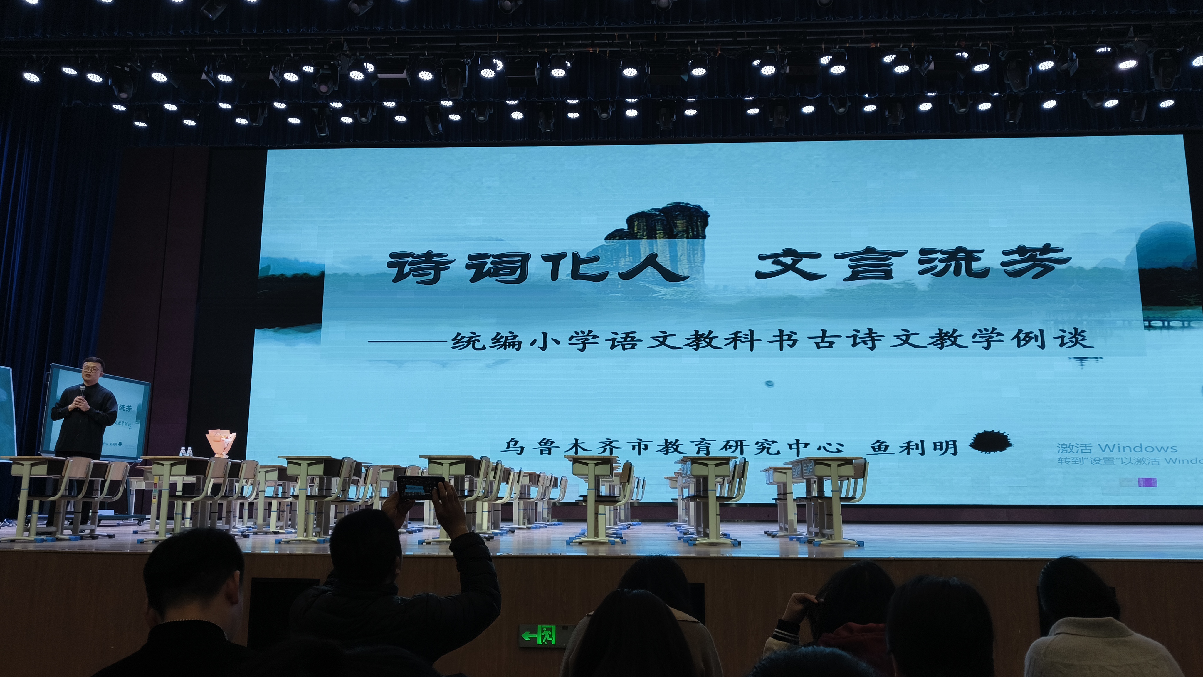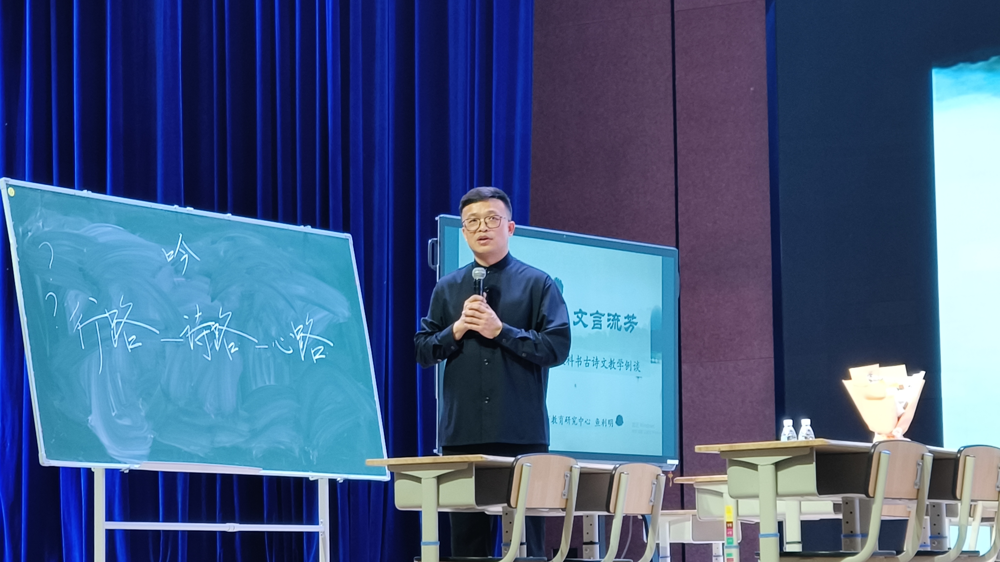 鱼利明老师以《暮江吟》为引,打造了一堂极具诗意的《能不忆江南》主题组诗示范课。课堂上,他以行路—诗路—心路为脉络,通过反复诵读、意境想象、情境创设,坚持以诗解诗,带领学生穿越时空,串联起白居易不同时期的经典诗作,感受古典诗词的韵律之美与词人绵长的思乡之情;在《统编小学古诗文教学例谈》讲座中,鱼老师结合统编教材经典案例,分享“以读促悟、以文化人”的古诗文教学策略,让传统文化在课堂中落地生根。