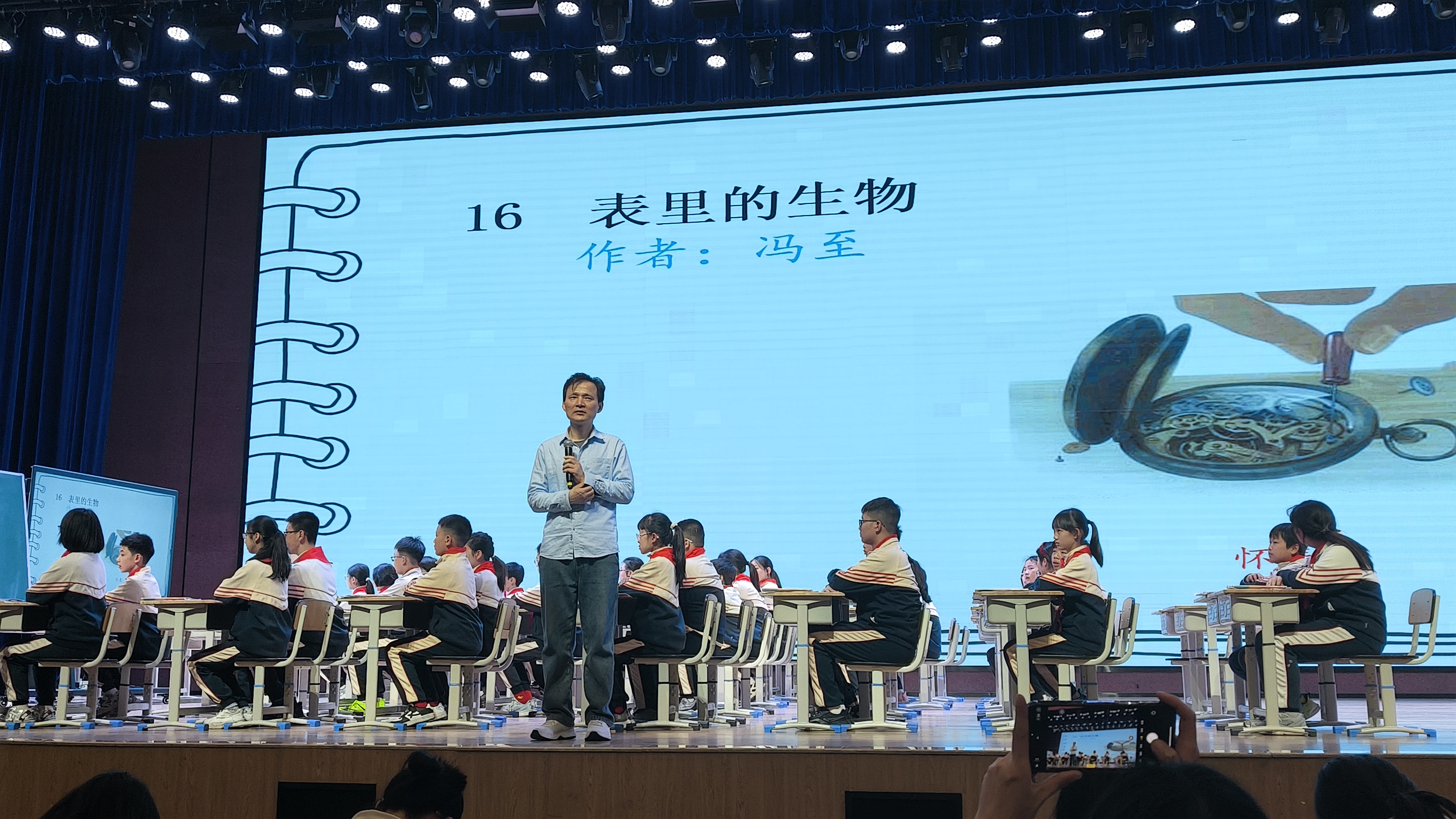 顾孙煜老师接续执教《表里的生物》第二课时,紧扣文本情感内核,通过重点语句品读、角色沉浸式演绎等方式,带领学生体会作者对童年的深切怀念,同时渗透细节描写、心理刻画的表达方法,让语文课堂兼具人文性与实践性。