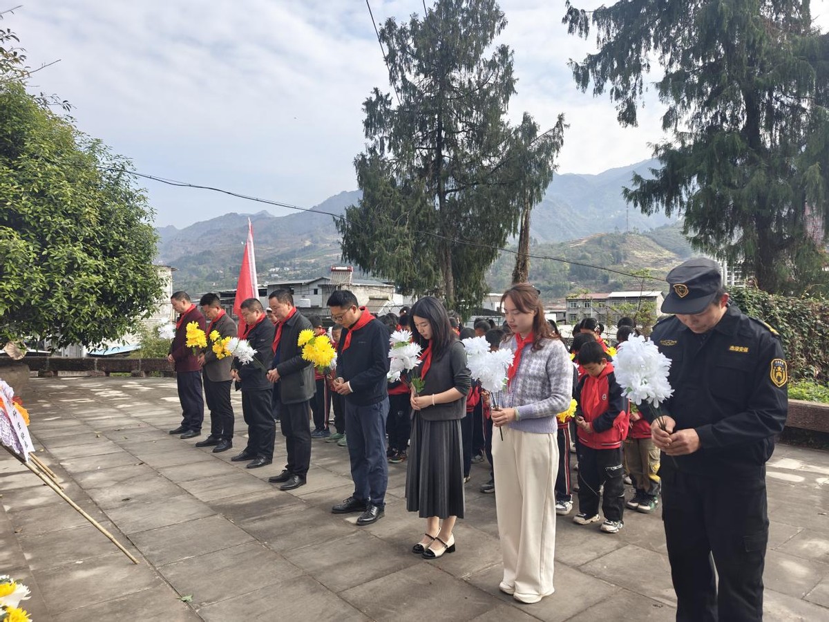 清明时节,细雨纷纷,哀思绵绵。为缅怀革命先烈,传承红色基因,弘扬中华民族传统美德,2026年4月2日,屏山县中都镇中心学校党支部联合学校德育处、少先队大队部组织党员教师代表、优秀少先队员代表,赴中都镇烈士陵园开展了"清明祭英烈,童心永向党"红色研学活动。