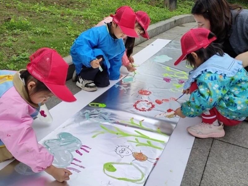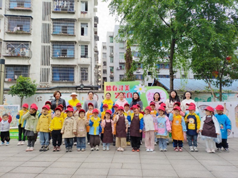 活动当天,幼儿们在南溪区北城幼儿园教师的有序组织下,满怀期待地抵达南溪区新南街公园。教师结合幼儿年龄特点,先带领幼儿开展了春日观察活动,引导孩子们细致探寻公园内的花草树木、光影变化,感受春天的色彩与生机,为后续艺术创作积累素材。