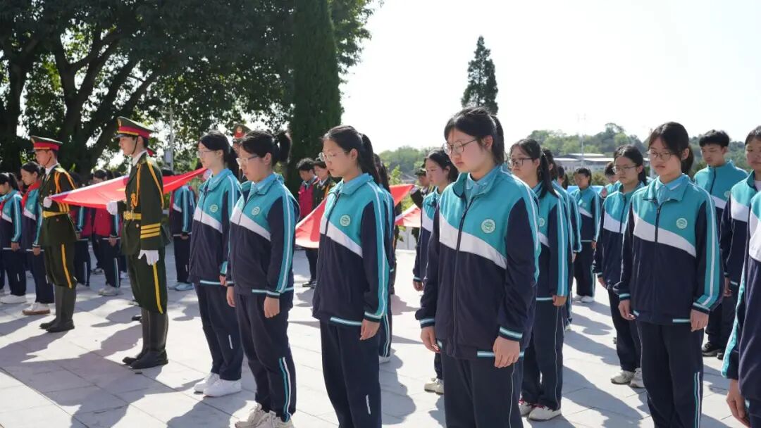 在庄严肃穆的氛围中,英姿飒爽的旗手们迈着整齐而坚定的步伐,护卫着鲜艳的五星红旗、共青团团旗、少先队队旗,正步走向指定位置,全体师生庄严肃立,齐声高唱中华人民共和国国歌,用歌声表达着对国家的忠诚和对和平的珍视。
