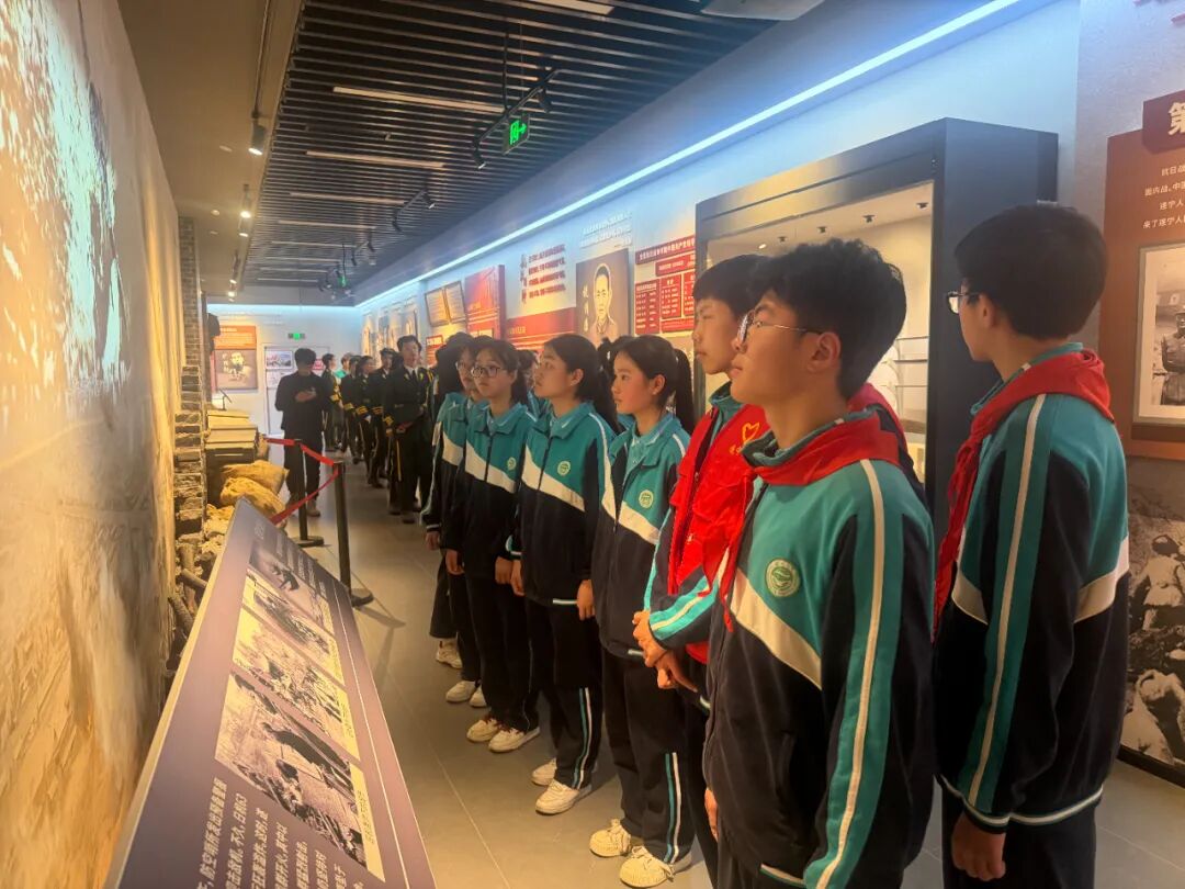 追忆历史,薪火相传。祭奠仪式结束后,全体师生进入烈士纪念馆内,近距离了解革命先烈的英雄事迹。同学们步履轻缓、神情肃穆,认真了解每一段英烈故事,在一幅幅图片、一件件实物中,深切感悟革命先烈的坚定信仰与赤诚初心。