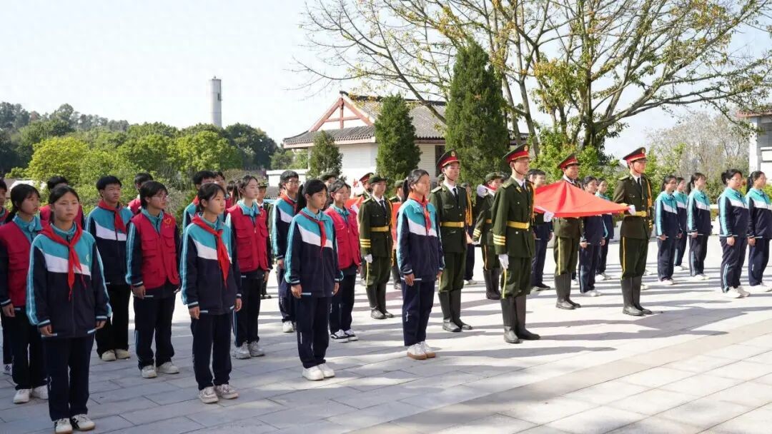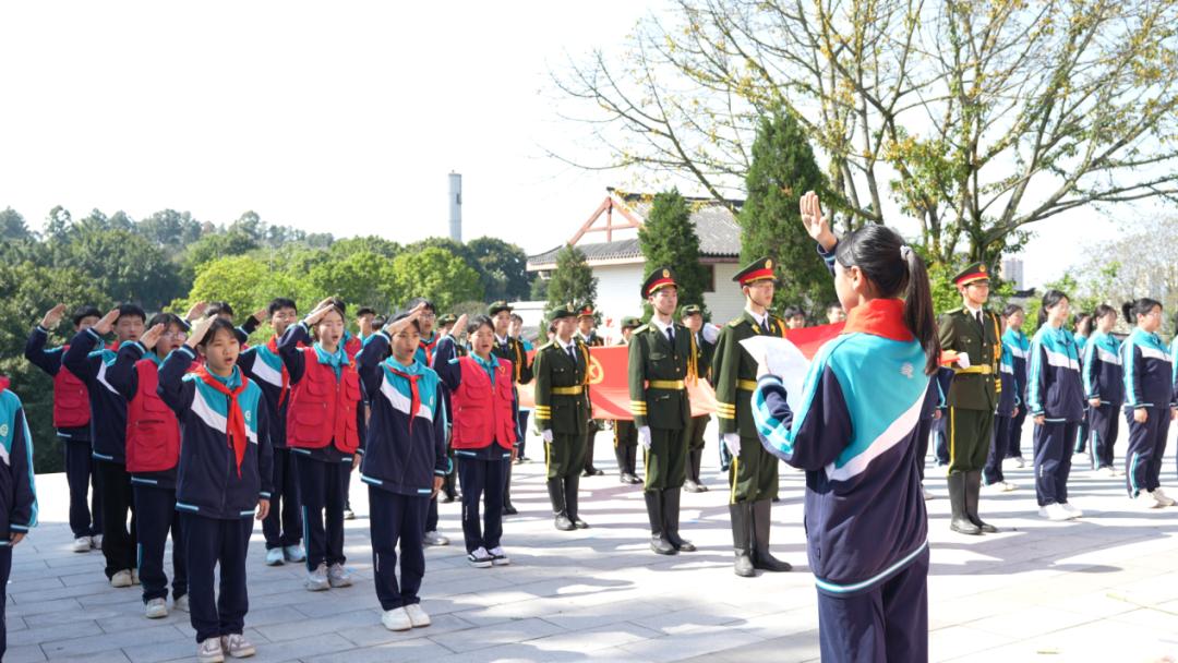 共青团员高举右拳,少先队员行队礼,面向烈士纪念碑,在领誓同学的带领下分别宣誓。铿锵有力的誓言不仅是同学们对先烈的庄严致敬,更是传承红色基因、争做时代新人的坚定承诺。