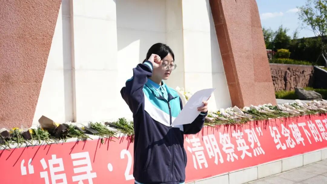 共青团员代表周媛满怀崇敬之情代表全体同学发言。她号召同学们要珍惜来之不易的幸福生活,继承先烈遗志,努力学习、奋发向上,以实际行动勇担时代使命,不负韶华、不负期望。