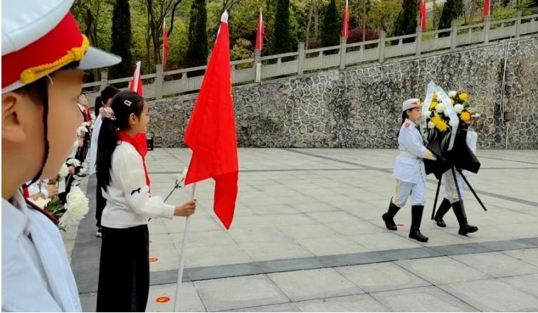 活动在庄严肃穆的氛围中拉开了帷幕。珙县实验小学校全体师生整齐列队、神情肃穆,出大队旗仪式庄严举行,鲜艳的大队旗在烈士纪念碑前徐徐展开,象征红色精神薪火相传。随后,该校全体师生齐唱《中国少年先锋队队歌》,嘹亮歌声回荡陵园广场,尽显少先队员朝气蓬勃、心系家国的精神风貌。