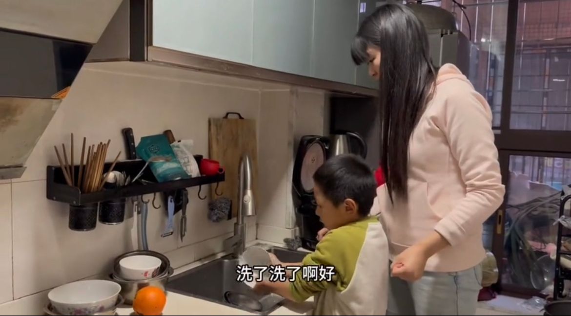 “老板,结一下账!”在1班昊宇同学家经营的早餐店里,上演了一场特殊的“角色扮演”。班主任化身“顾客”,看着化身“小帮工”的孩子熟练地拿碗筷、端早餐、擦桌子,老师灵机一动,顺势让孩子帮忙算账。这不仅是对孩子居家劳动实践的点赞,更是一次巧妙绝伦的数学启蒙。将抽象的数学知识无缝融入充满烟火气的生活场景中,让春假居家实践的意义尽显其中。而在6班,老师和孩子一起在厨房里炸起了酥肉,在美食的香气中传递劳动的快乐。